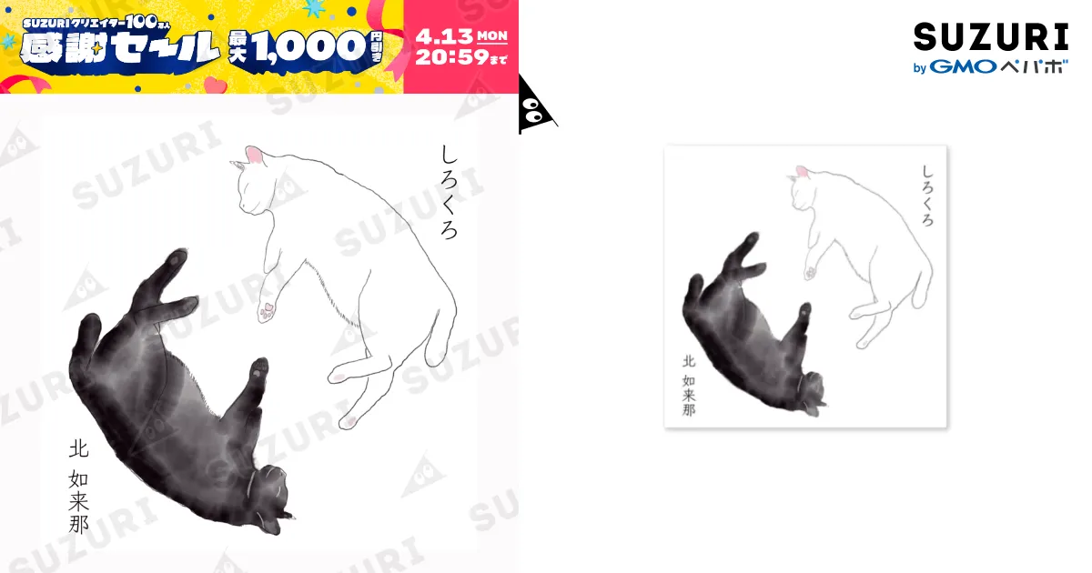 『しろくろ』リリース記念オリジナルタオルハンカチ / 北如来那グッズ公式サイト ( nyokina )のタオルハン...